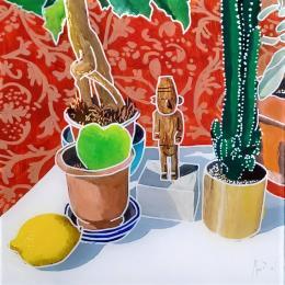 This unique and original contemporary artwork "Le fétiche dans le salon" on the subject of Still-life has been created by the contemporary artist Auriol Philippe.