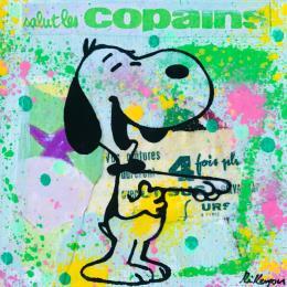 This unique and original contemporary artwork "Snoopy mdr" on the subject of Pop icons has been created by the contemporary artist Kikayou.