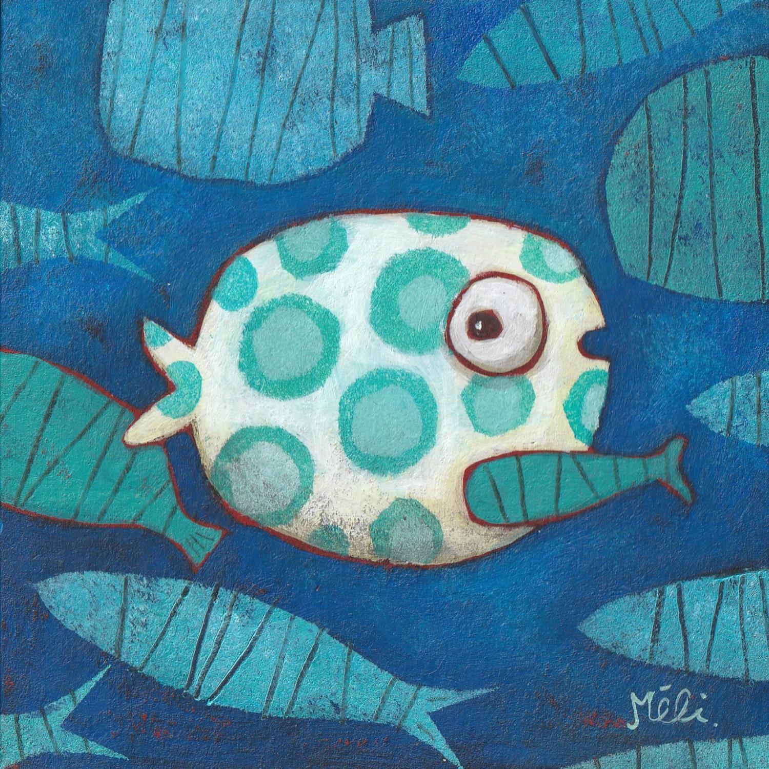 Poisson à contre-courantPintura Poisson à contre-courant por Catoni Melina | Pintura Naive art Marine Nature Animals Acrylic