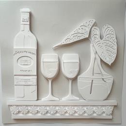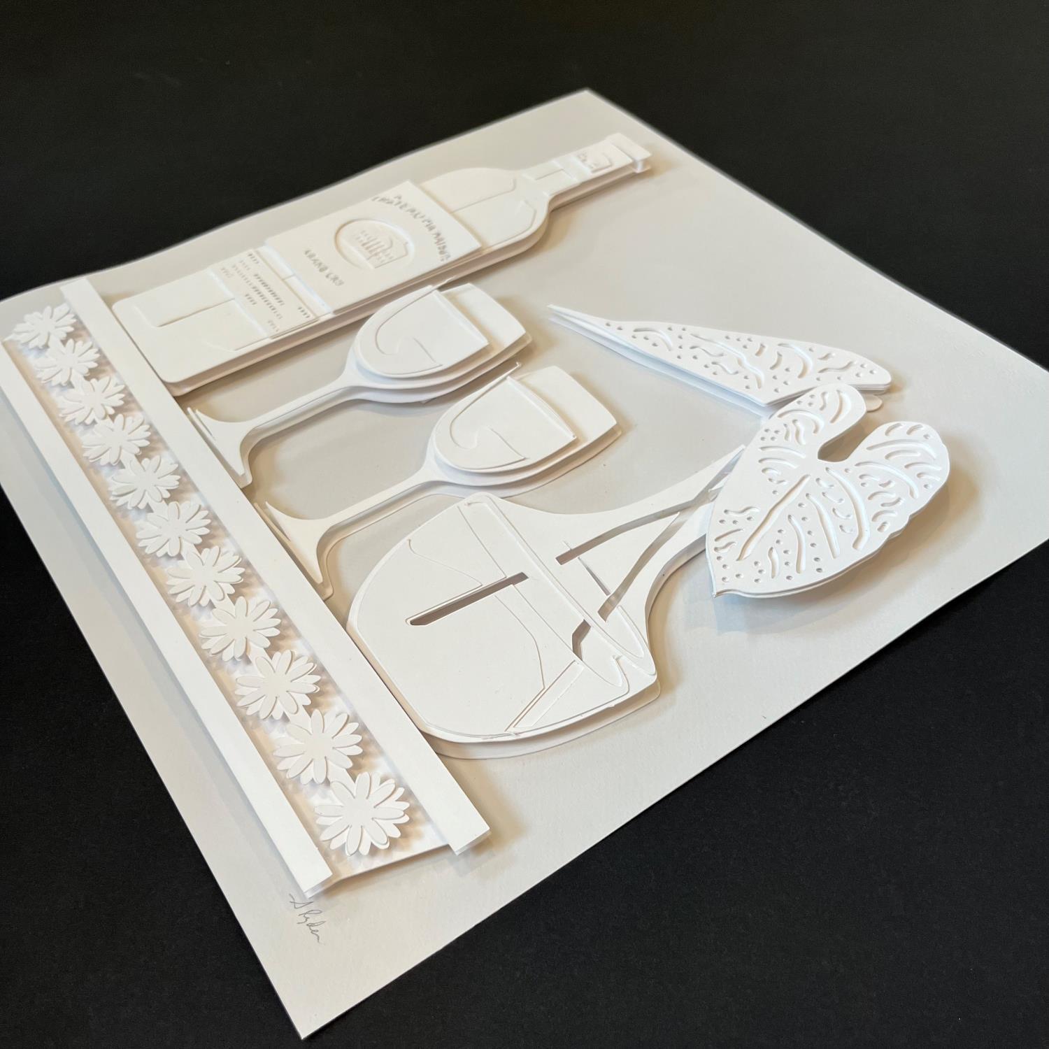 Wine in the Afternoon is created with many layers of high quality white paper. It is a Bas Relief. Shadows create a sense of depth.