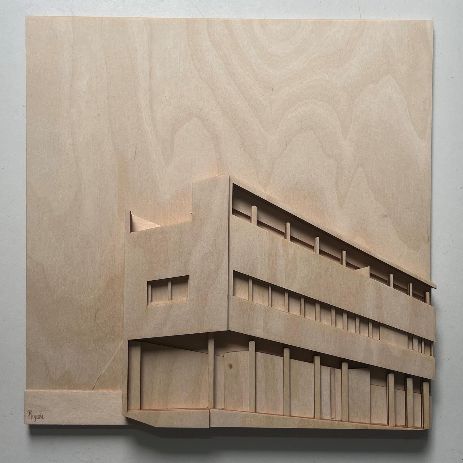 Helen, known by her pseudonym Plyconic, is an East London-based artist with a background in furniture design. Her passion for art blossomed after a captivating visit to London's Barbican Centre, where the interaction of light with architecture deeply inspired her. This decisive moment led her to use plywood, the material of her creations, to capture and recreate the observed play of light.