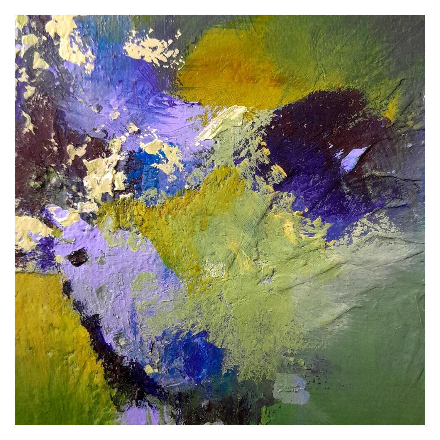 The artist used the Acrylic technique to create this small-format painting on canvas in the Abstract style.