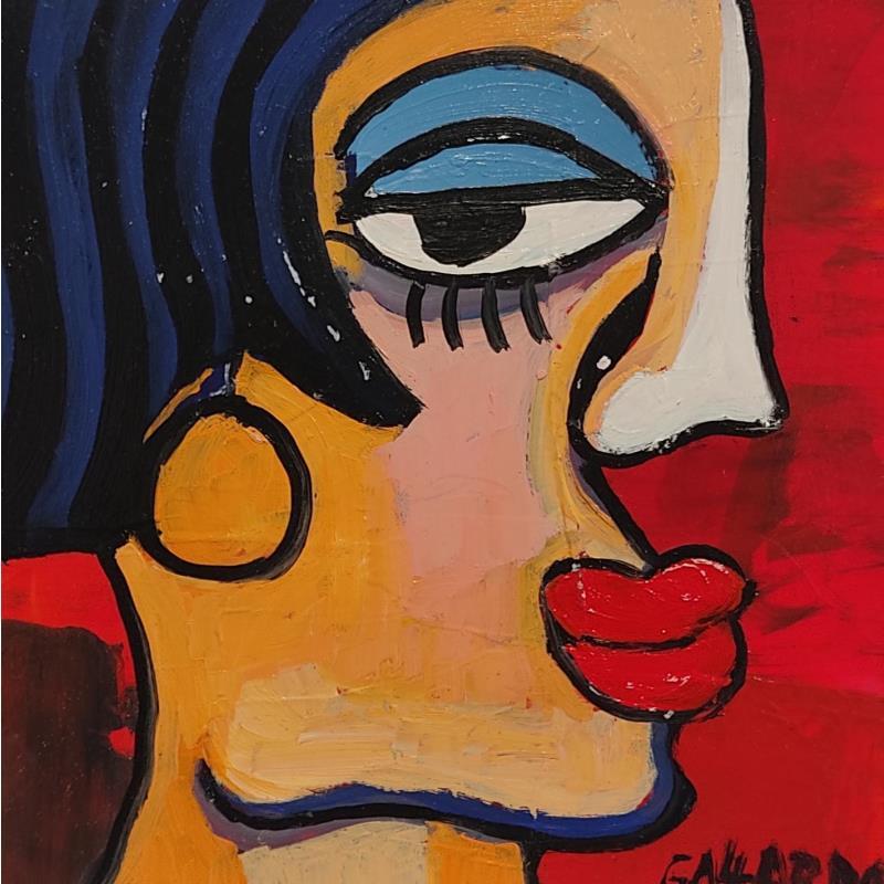 Mercedes grew up in Malaga where she began her art studies. When she moved to Barcelona, she continued her education with professional artists such as Manolo Hugué (sculpture and glazing) and Manuel Massana (drawing and painting). In school, she took various courses on the techniques of stained glass, primitive art, engraving, sacred symbols and the history of art. She specialized in contemporary art and decided to turn her passion into her profession. In 2006, she opened her own gallery in Cadaqués, the Gallardo Art Space. The world described in her paintings is a colourful and lively world that she approaches head-on with close-up faces (mostly women) or landscapes that are largely inspired from where she now lives (Cadaqués).