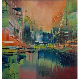 This unique and original contemporary artwork "Ciel Mandarine" on the subject of Urban has been created by the contemporary artist Levesque Emmanuelle.