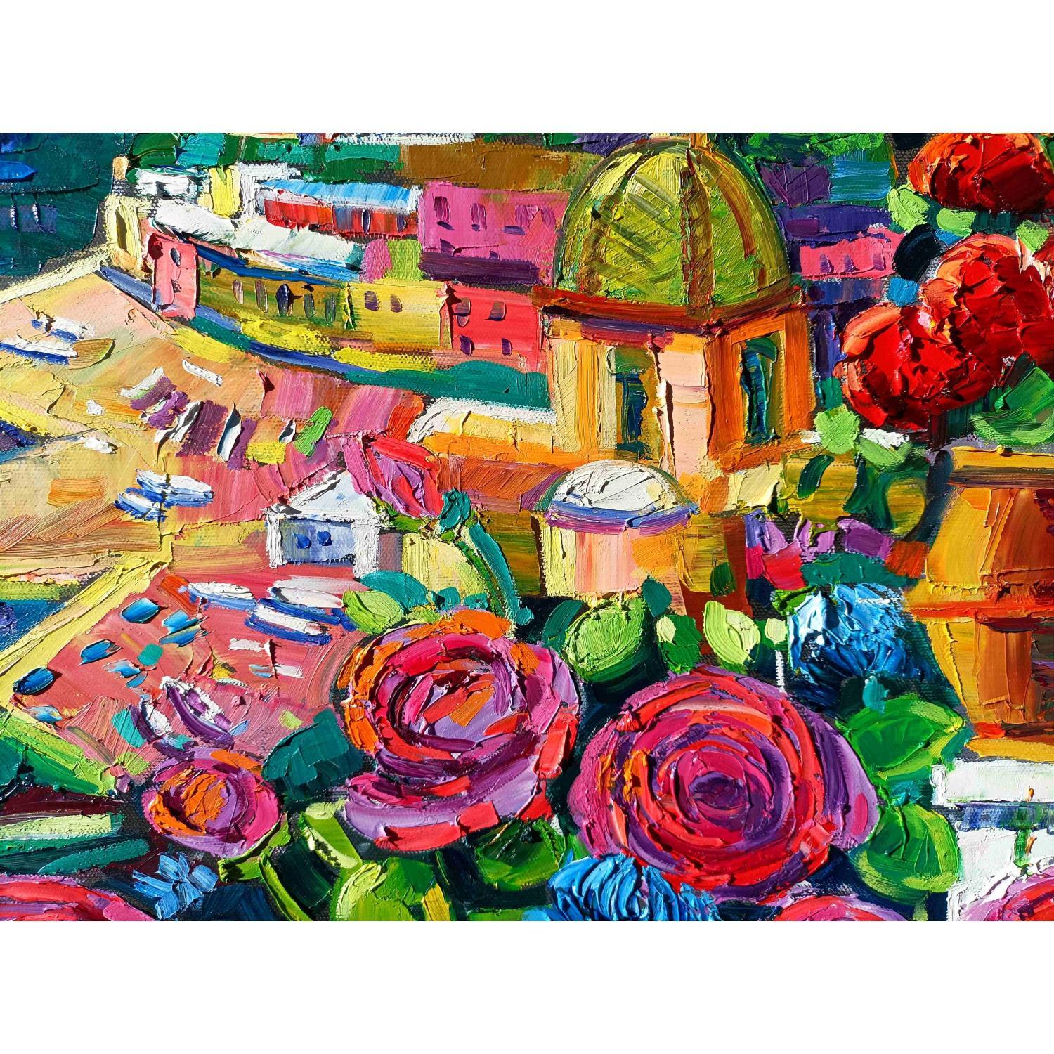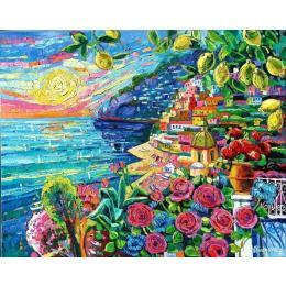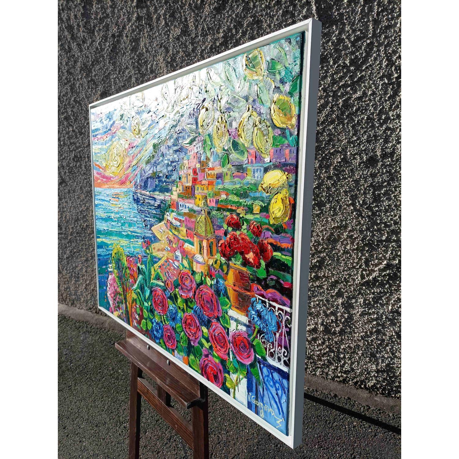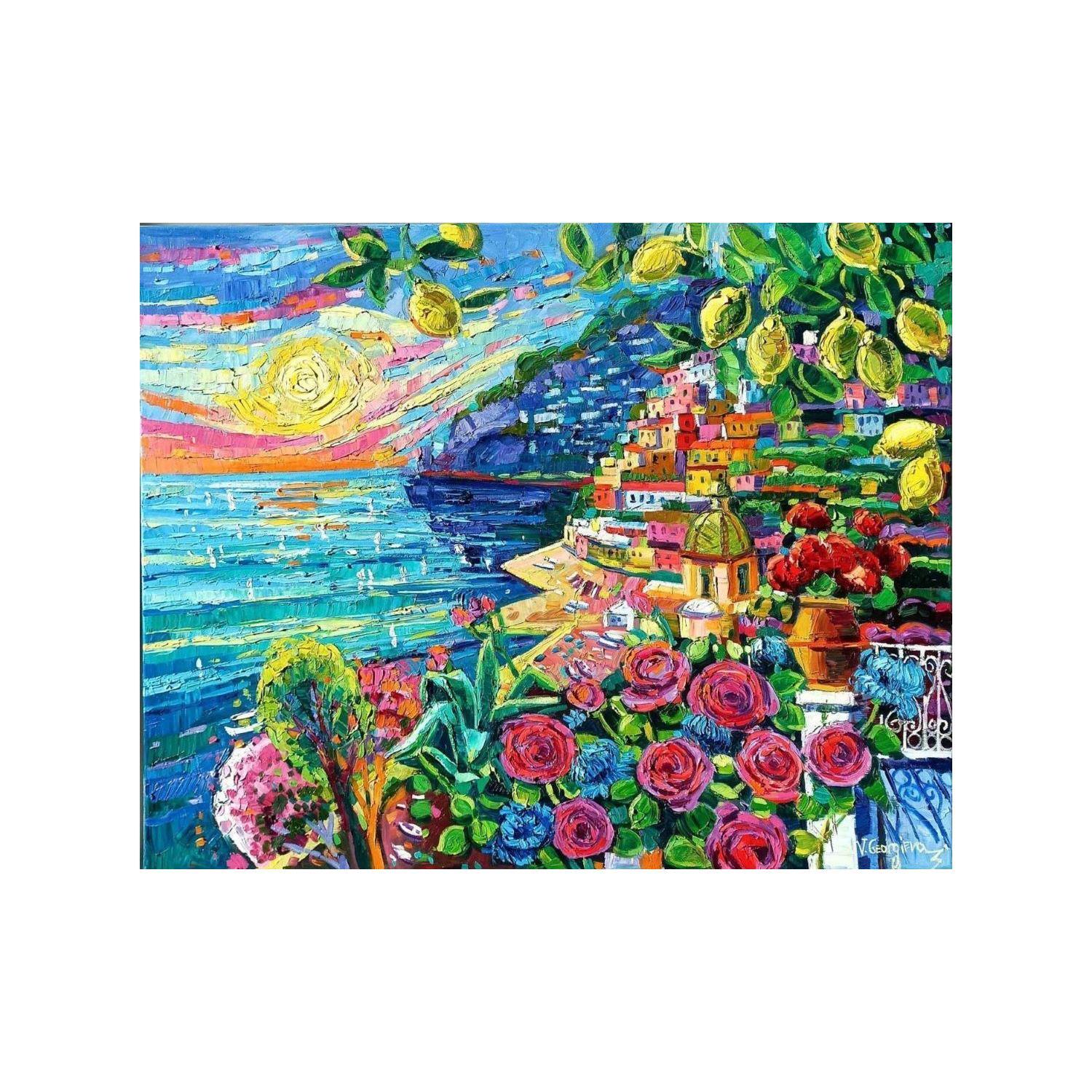 This unique and original contemporary artwork "Lemons in Positano" on the subject of Landscapes has been created by the contemporary artist Georgieva Vanya.