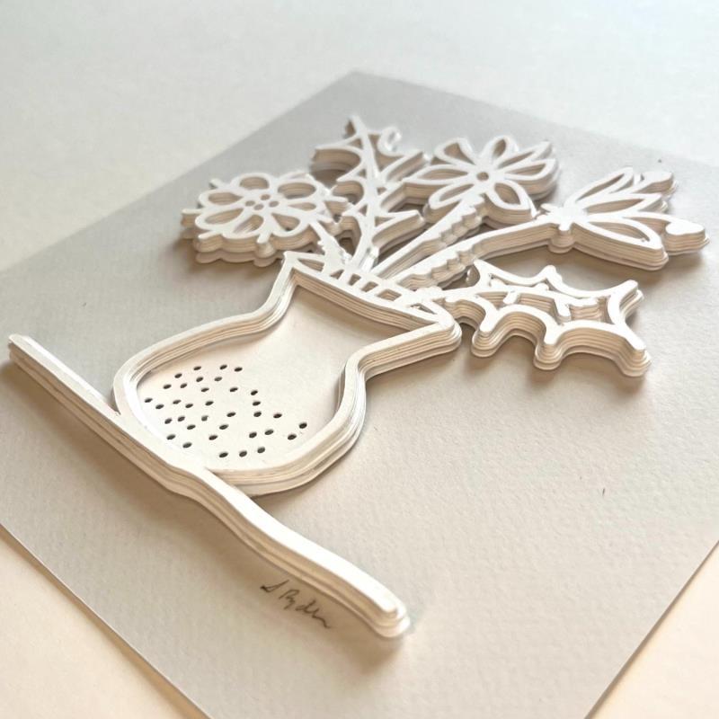 The artist used many layers of paper spaced to create shadows to enhance the image