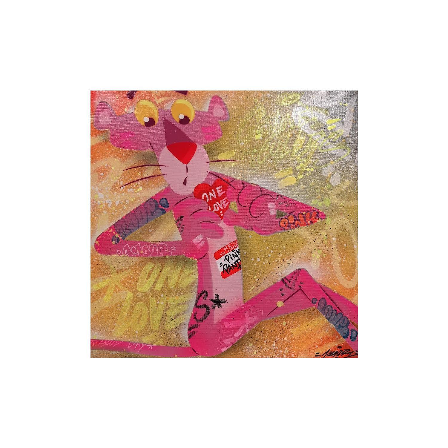 This unique and original contemporary artwork "Pink Panther" on the subject of Pop icons has been created by the contemporary artist Kedarone.