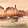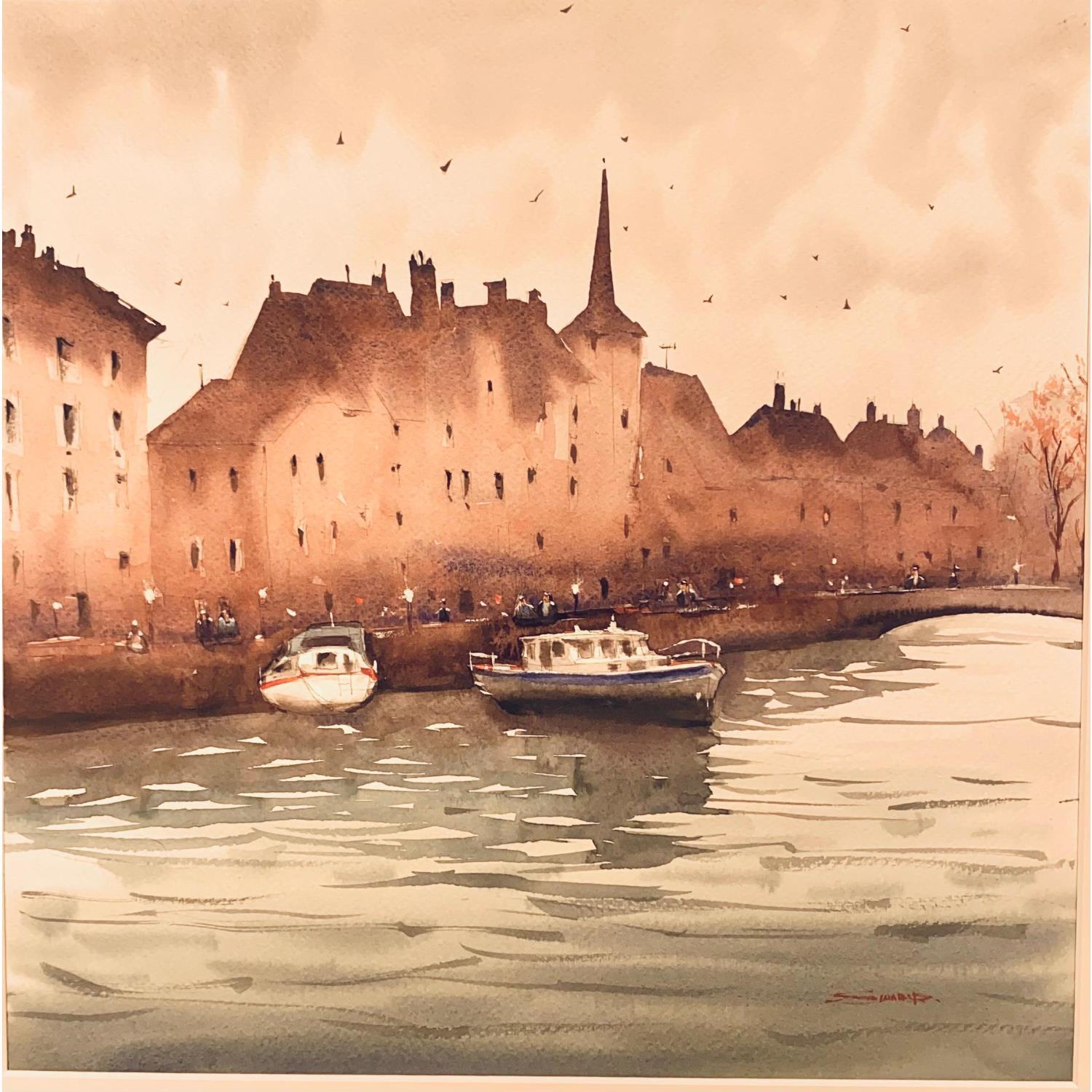 This unique and original contemporary artwork "Quay and the Church of Saint Nicolas, Strasbourg III" on the subject of Urban has been created by the contemporary artist Dandapat Swarup.