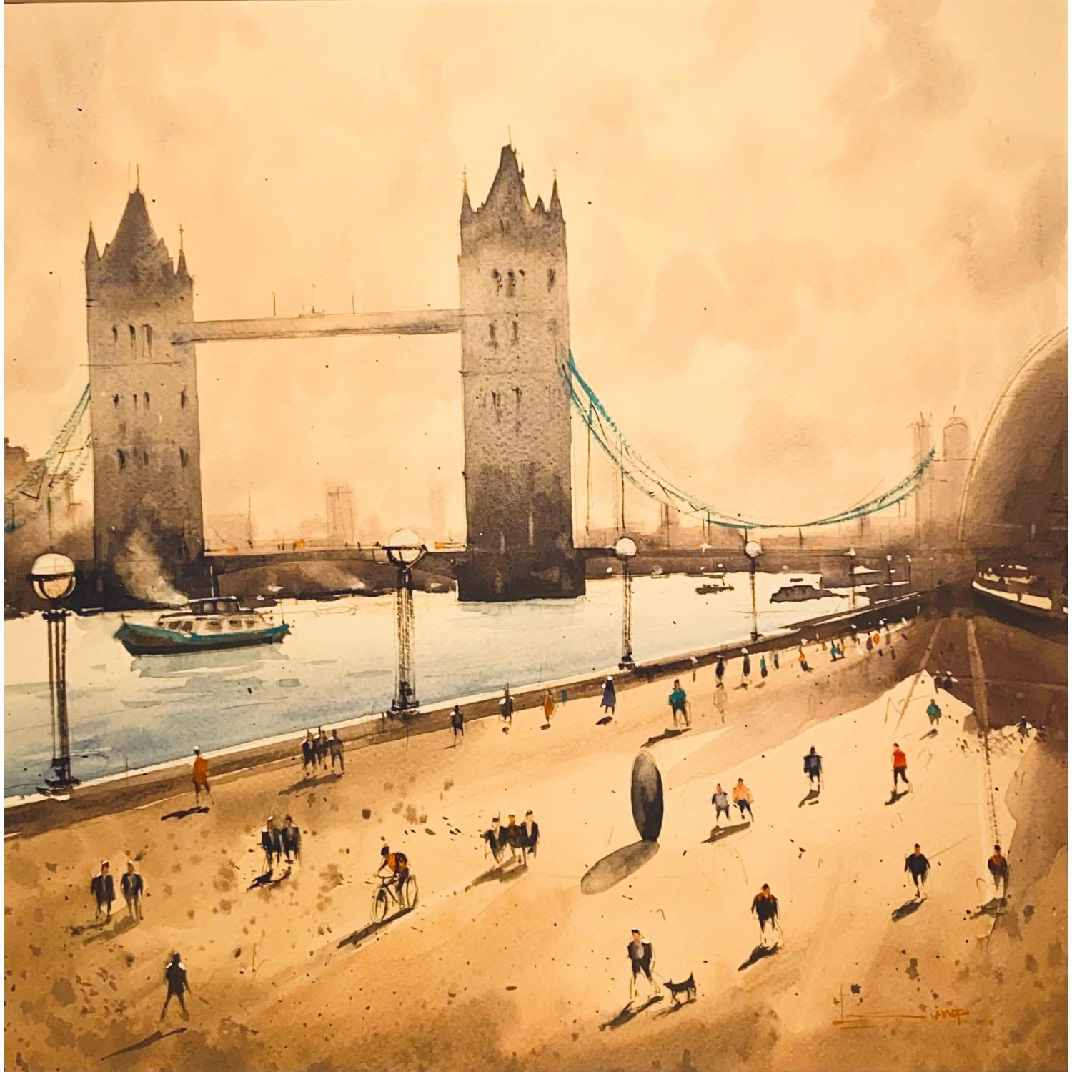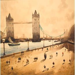 This unique and original contemporary artwork "Tower Bridge on a Sunny Day" on the subject of Urban has been created by the contemporary artist Dandapat Swarup.