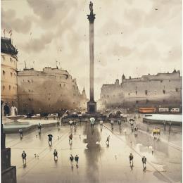This unique and original contemporary artwork "Trafalgar Square after rain III" on the subject of Urban has been created by the contemporary artist Dandapat Swarup.