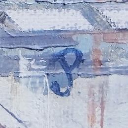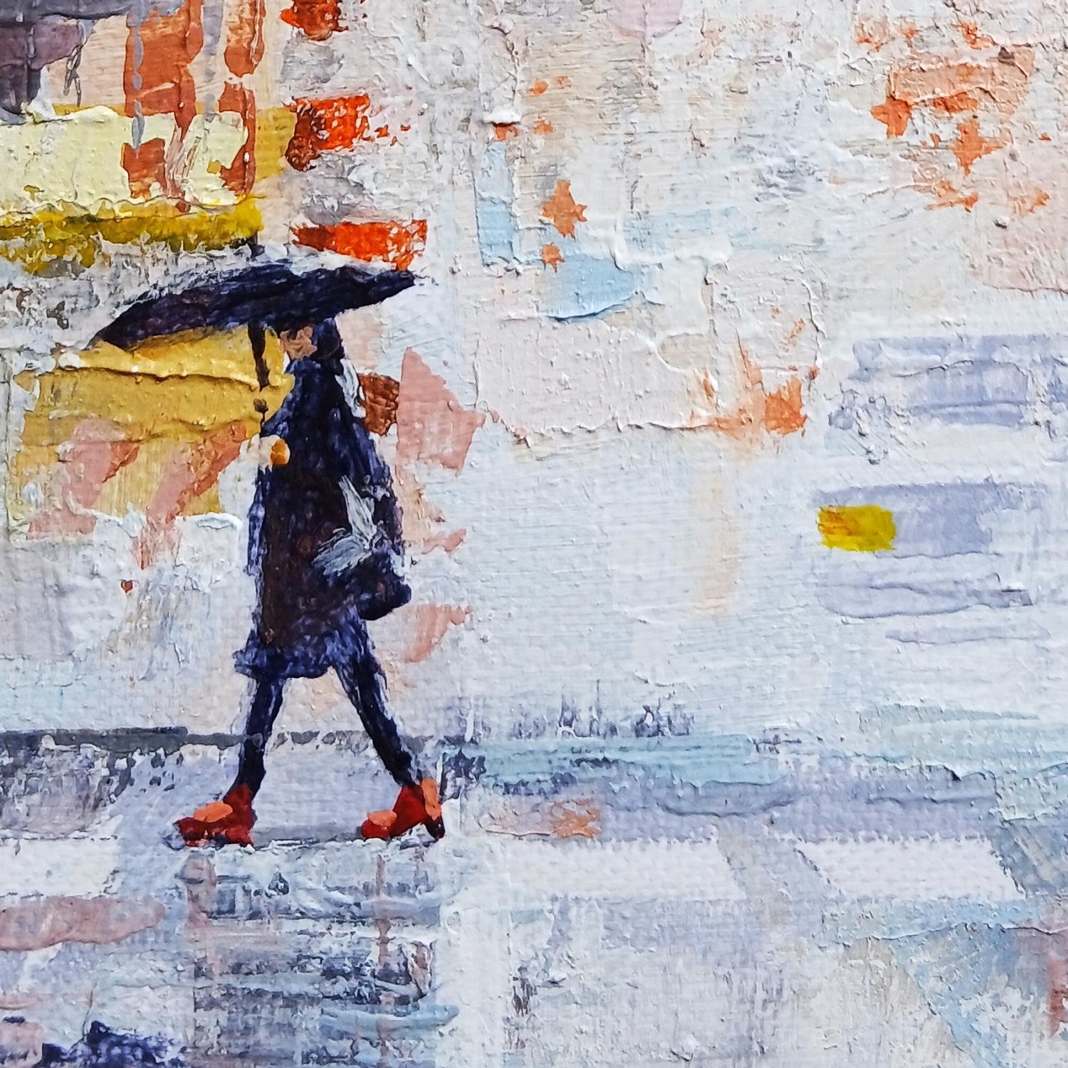 The artist used the Acrylic knife technique to create this small-format Figurative-style painting on Canvas with an Urban theme.