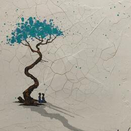 François-Régis Lemonnier’s paintings explore man and his environment. In his paintings, tiny characters float in large spaces, move about and meet each other, trying their own condition, solitude, joy, poverty, solidarity and oversight. Their tiny size highlights their great humility: man and his destiny, singular, happy or dramatic, in a world of constant change.\n\nFar from representation and realism, François-Régis Lemonnier’s paintings rise above and form open windows on the world, an immense world, swallowing an increasingly small, almost invisible man. These journeys to the centre of the universe are also journeys to our inner self, the deepest part of our inner being, where body and form disappear to leave space for the dissipation of the mind.