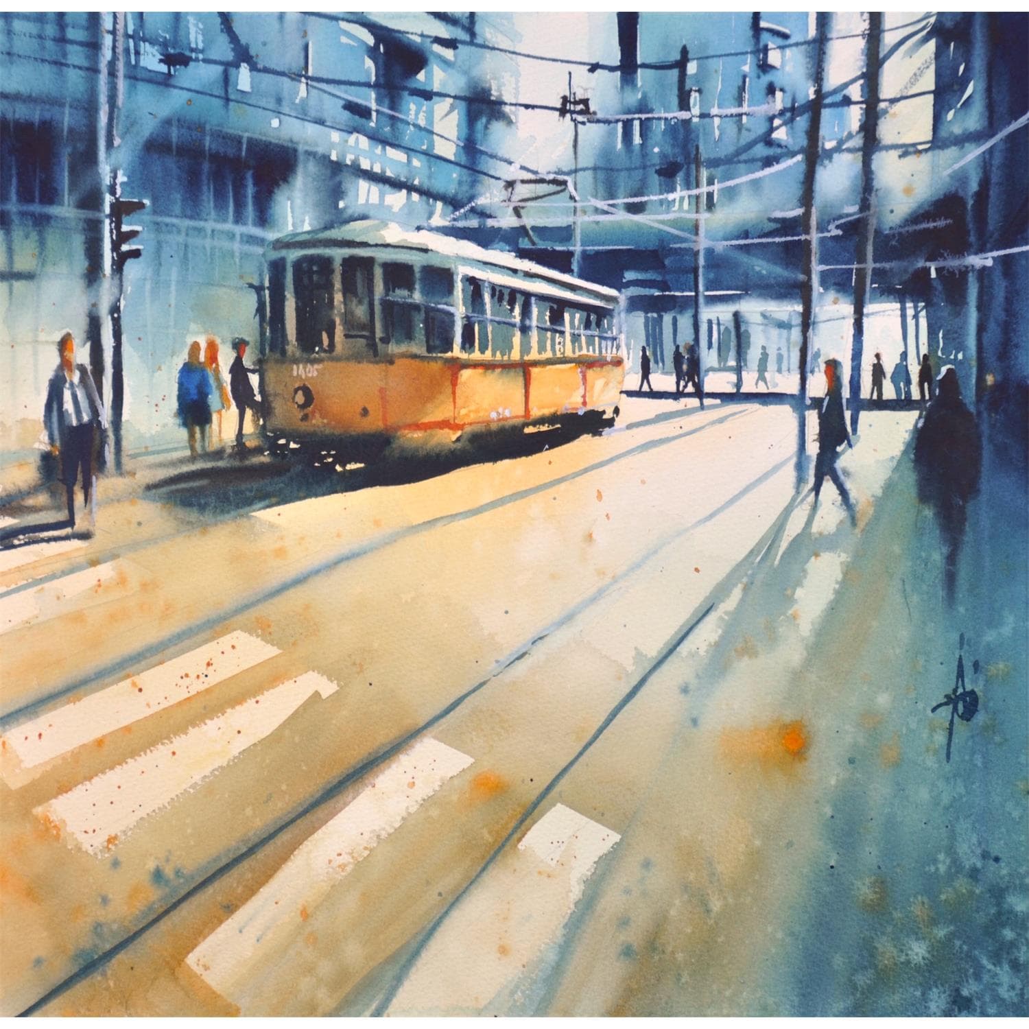 This unique and original contemporary artwork "À la descente de la passerelle" on the subject of Urban has been created by the contemporary artist Abbatucci Violaine.