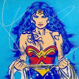 This unique and original contemporary artwork "Wonderwoman" on the subject of Pop icons has been created by the contemporary artist Revel.