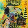 The artist used Acrylic, Gluing, Graffiti media on Canvas board to create this Pop-art, Small size painting.