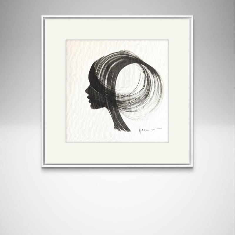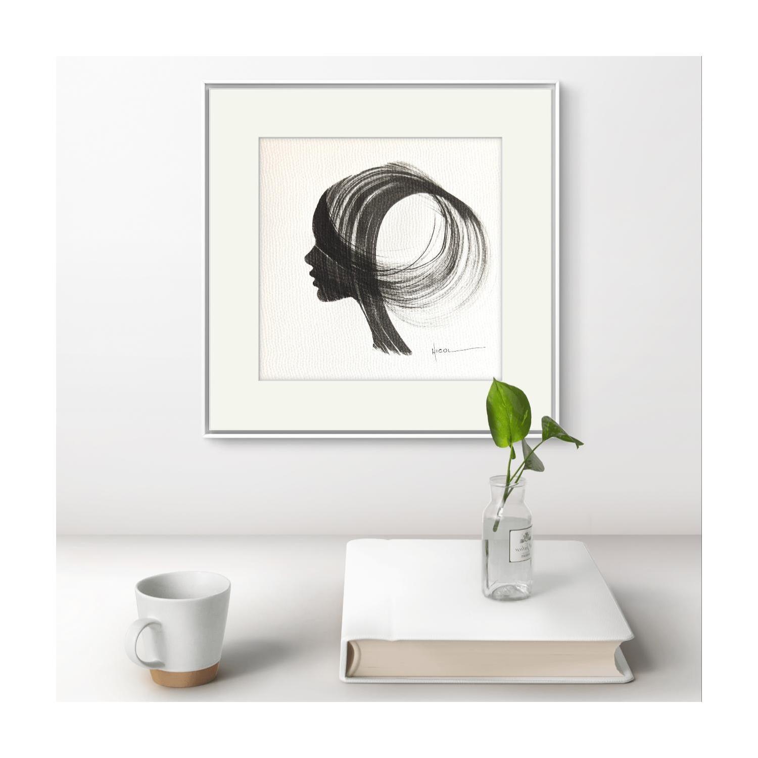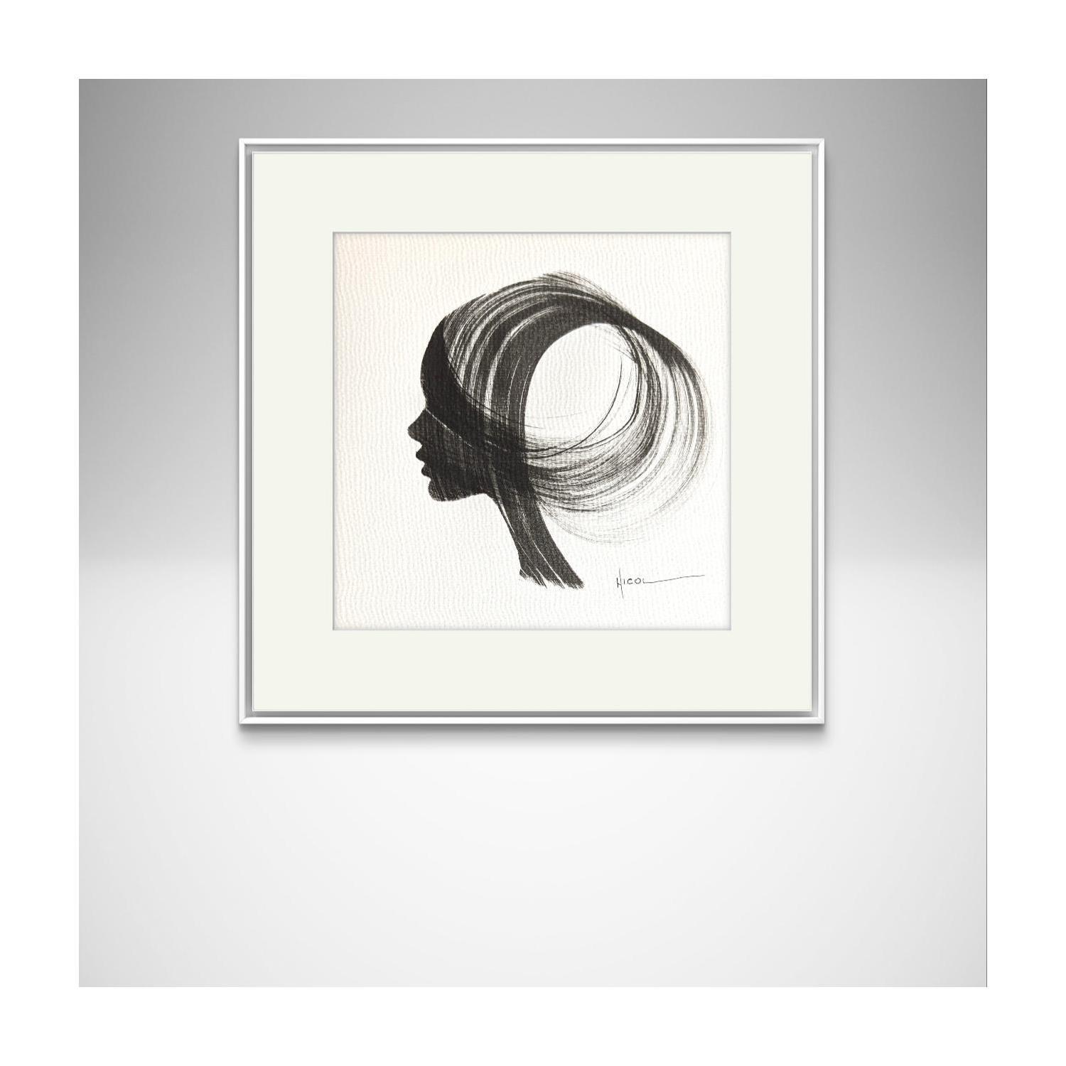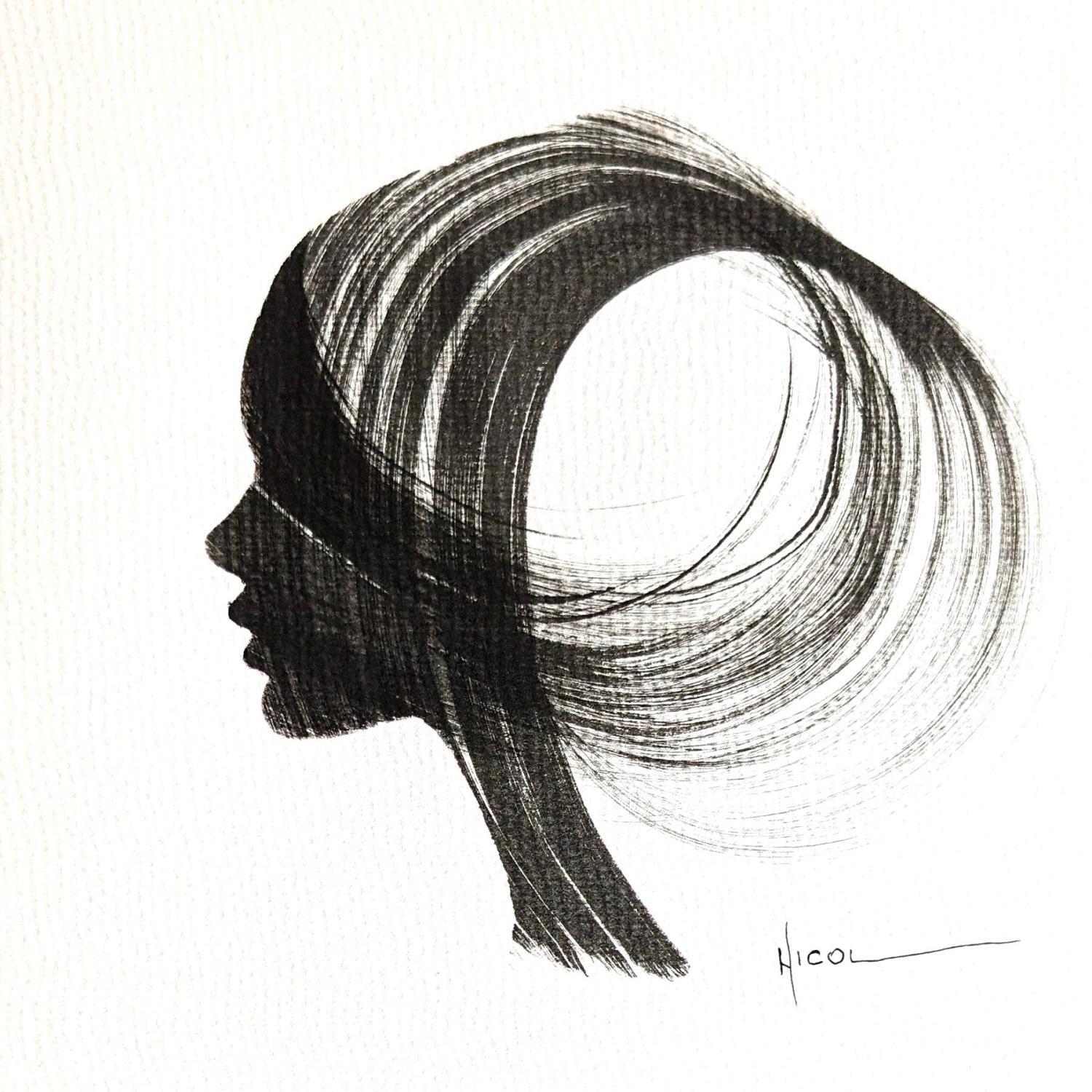 The artist used the Ink technique to create this small-format painting on Paper in the Figurative style on the themes of Minimalist, Black & White, Portraits.