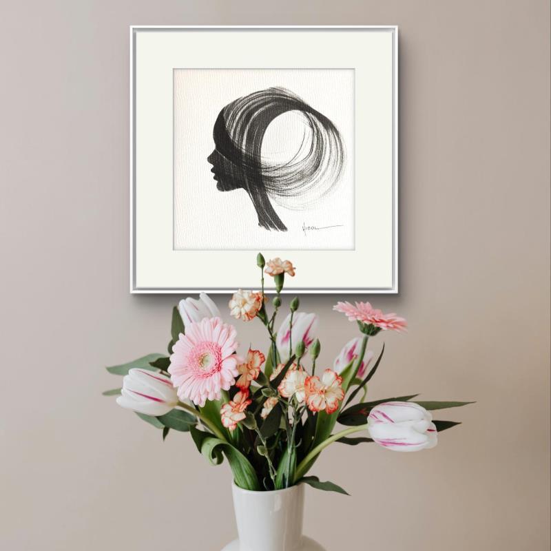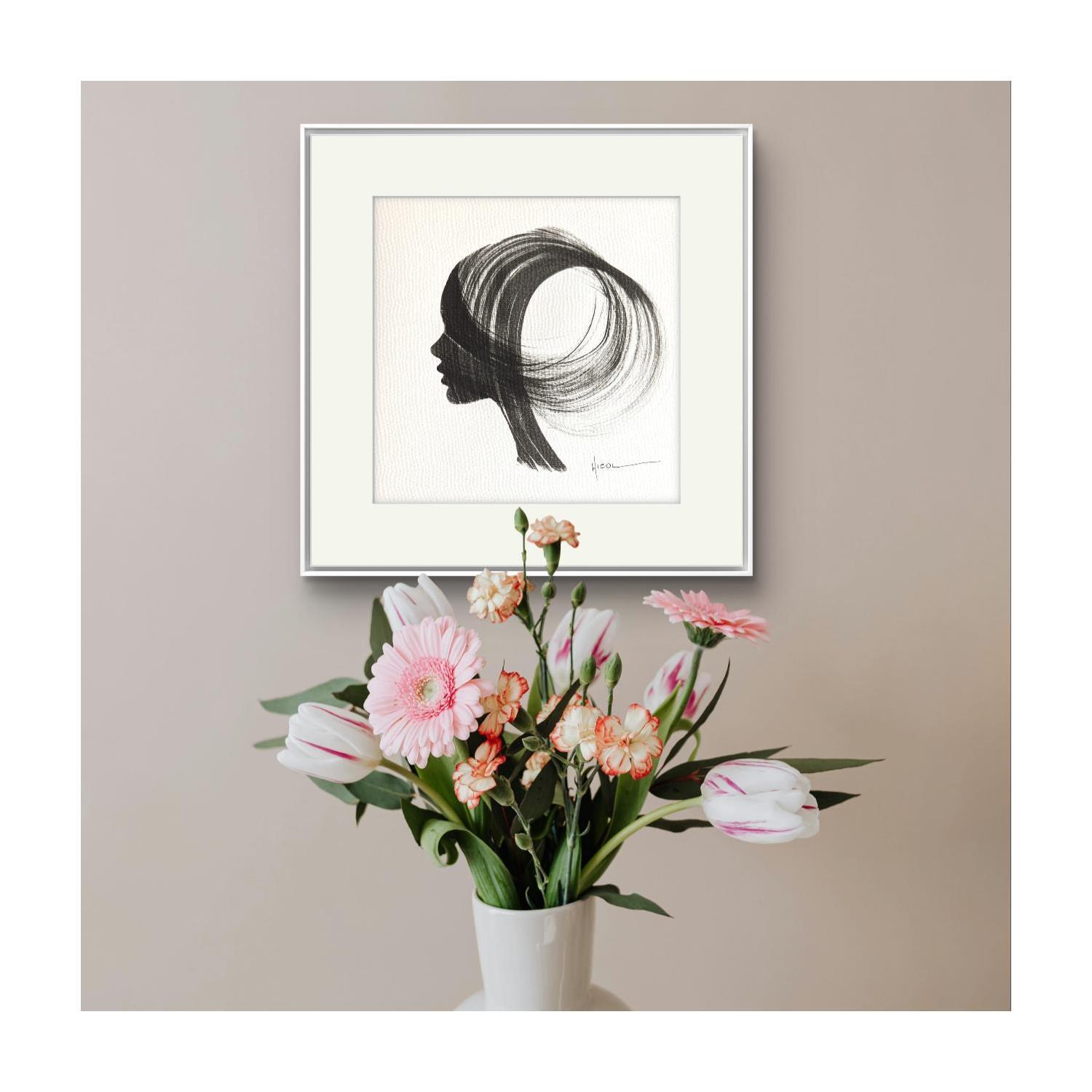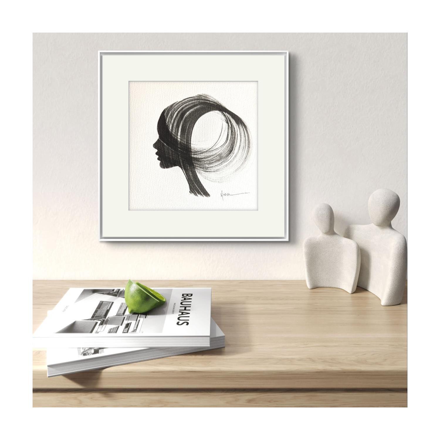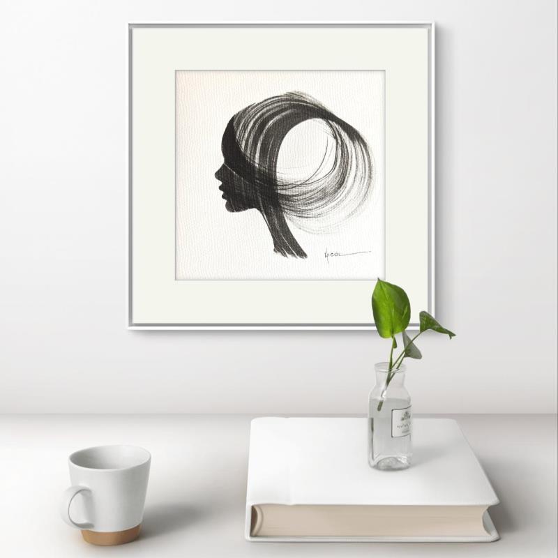 The artist used the Ink technique to create this small-format painting on Paper in the Figurative style on the themes of Minimalist, Black & White, Portraits.