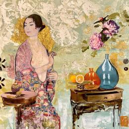 This unique and original contemporary artwork "Ophelia " on the subjects of Portrait, Life style has been created by the contemporary artist Romanelli Karine.