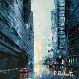 This unique and original contemporary artwork "Into the blue" on the subject of Urban has been created by the contemporary artist Rochette Patrice.