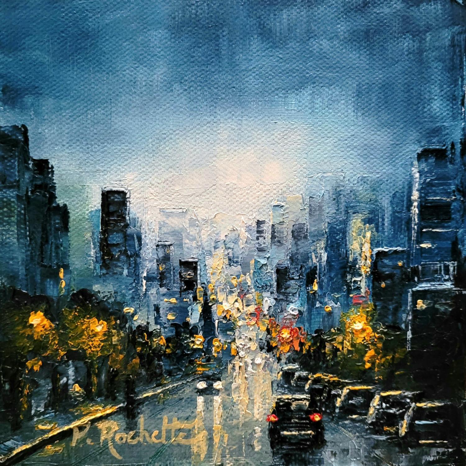 This unique and original contemporary artwork "A new morning" on the subject of Urban has been created by the contemporary artist Rochette Patrice.