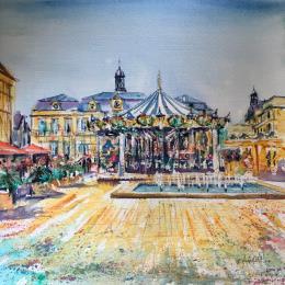 This unique and original contemporary artwork "Troyes Le grand Carrousel " on the subject of Urban has been created by the contemporary artist Hoffmann Elisabeth.