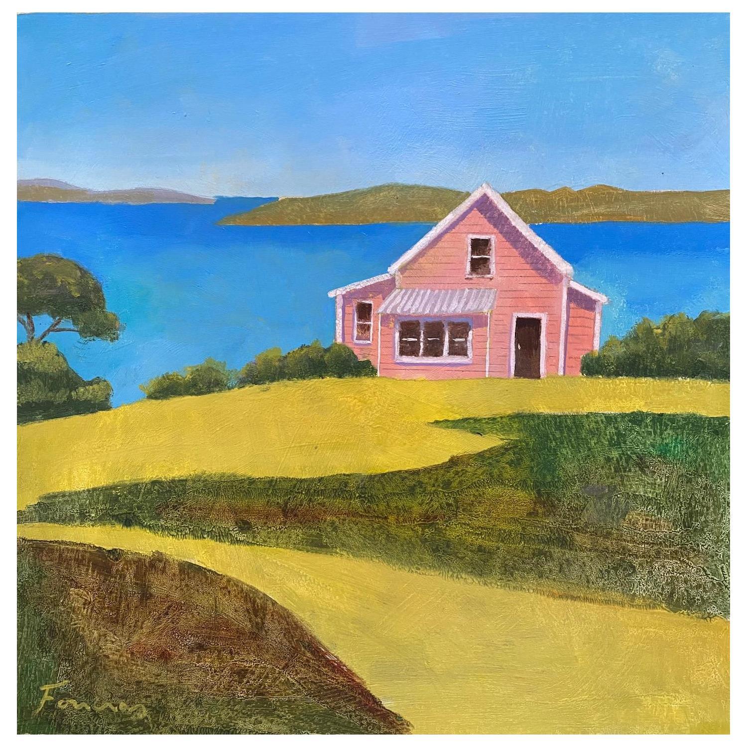This unique and original contemporary artwork "La maison rose sur l'océan" on the subjects of Architecture, Landscapes has been created by the contemporary artist Foucras François.