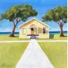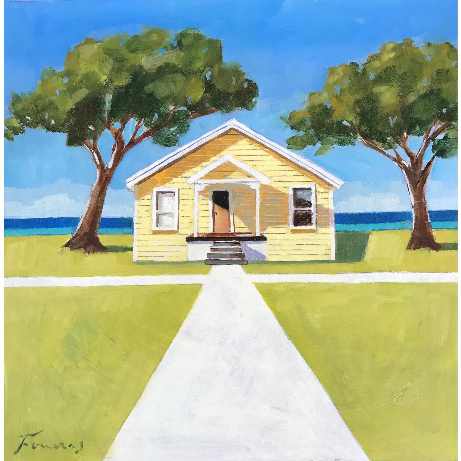 This unique and original contemporary artwork "La maison jaune sur l'azur" on the subject of Landscapes has been created by the contemporary artist Foucras François.