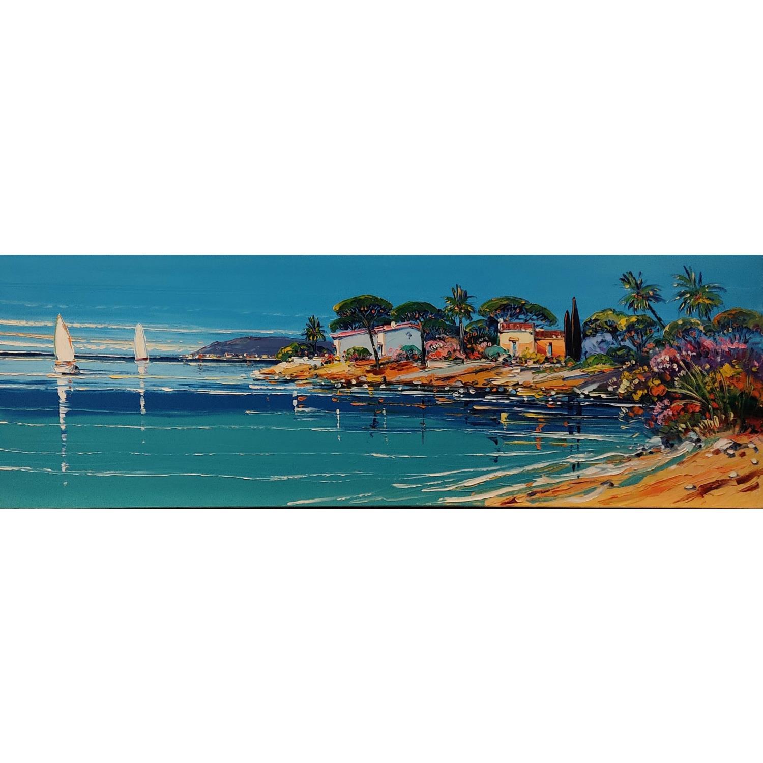 This unique and original contemporary artwork "Sur la plage ensoleillée" on the subject of Landscapes has been created by the contemporary artist Corbière Liisa.