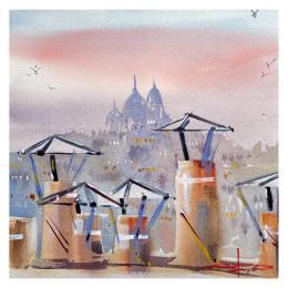 Pintura Les cheminées de Paris por Bailly Kévin | Pintura Figurative Urban Architecture Watercolor Ink