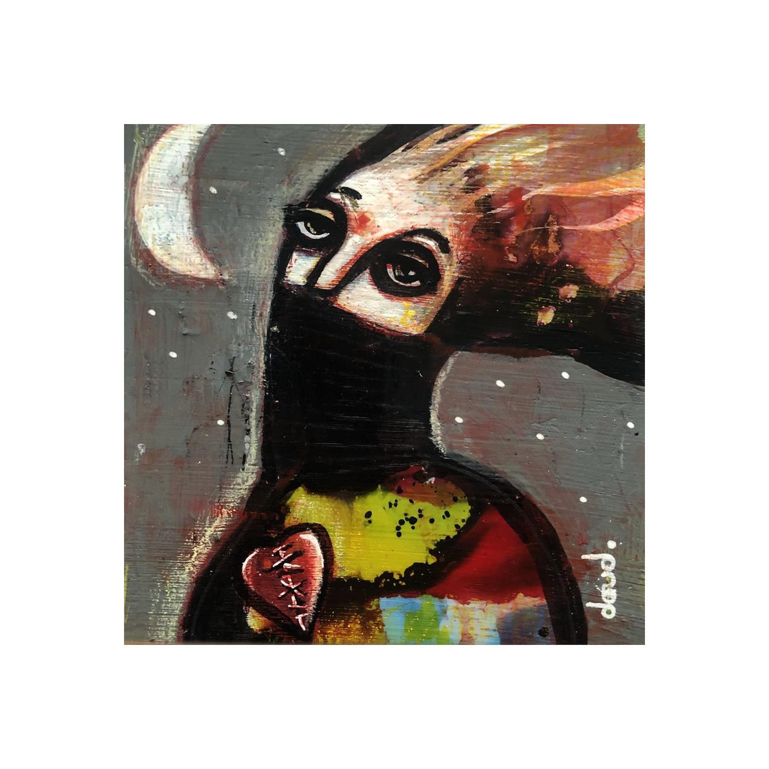 The Breton Loic Tarin, aka Doudoudidon, passed the baccalaureate, then a degree in advertising graphic design. He started off creating images and illustrations, and more recently it clicked into place for him that he should start an artistic life. Influenced by his often technical and scientific readings and listening, he has long wondered about the layout of the universe, Darwinian theories, human sciences… Considering that "he knows nothing", he creates poetic, expressive and intuitive "paintings" (for him painting his first and foremost silent poetry). The idea of distortion of media is the basis of his artistic practice. He likes to use what is initially recyclable waste. He also likes to distort objects like playing cards with themes inspired by the Middle Ages.