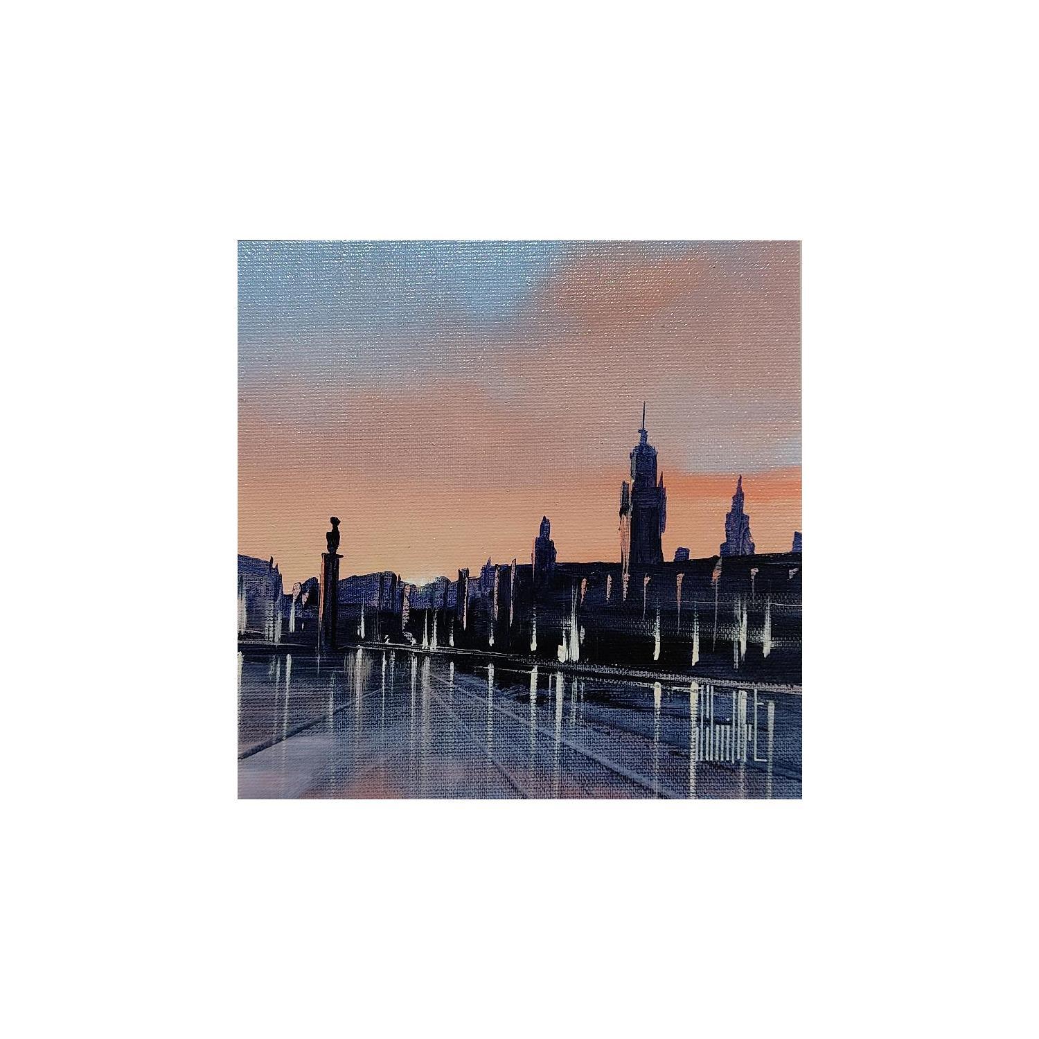 This unique and original contemporary artwork "Premières lueurs" on the subject of Urban has been created by the contemporary artist Guillet Jerome.