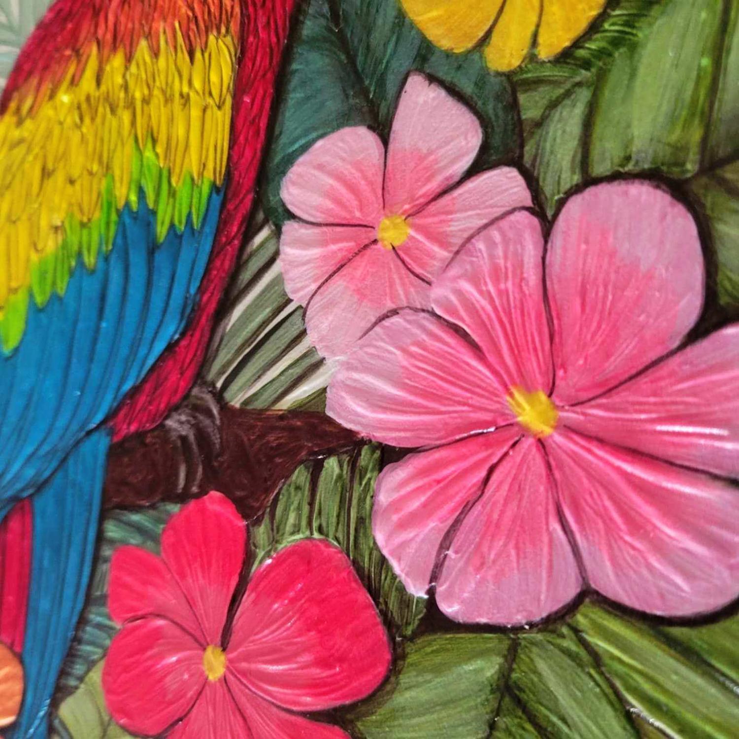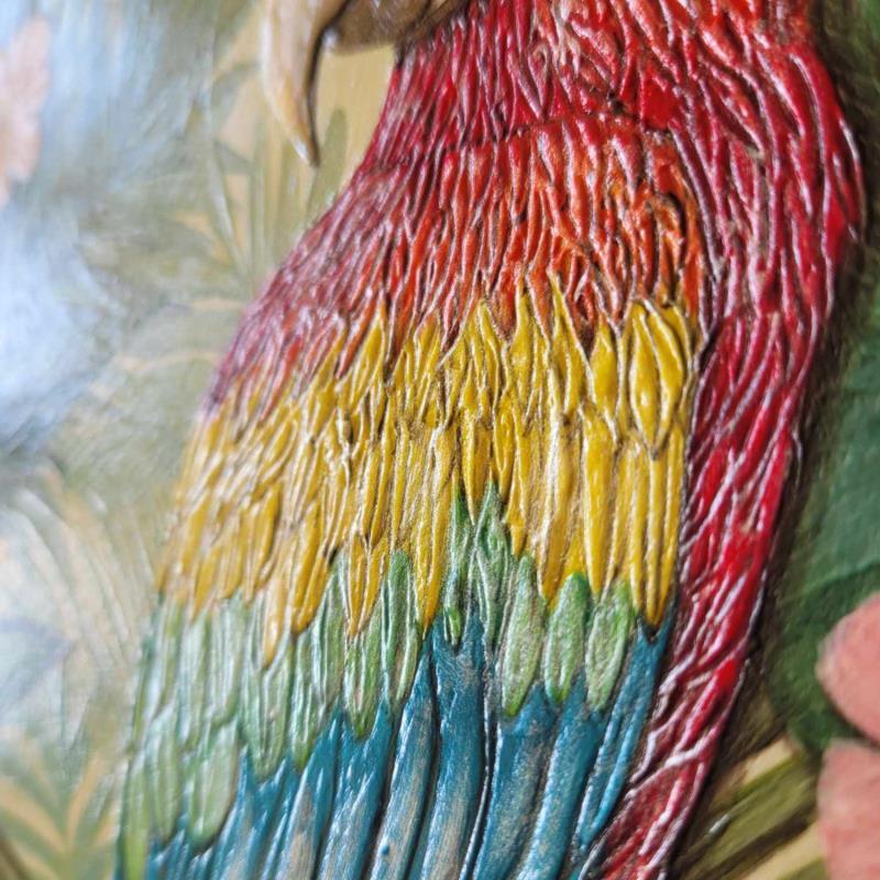 This unique and original contemporary artwork "Bel emplumé" was created by contemporary artist Geiry. The artist used various techniques to create this small-format painting on wood in the Matiérisme style.