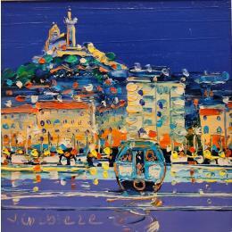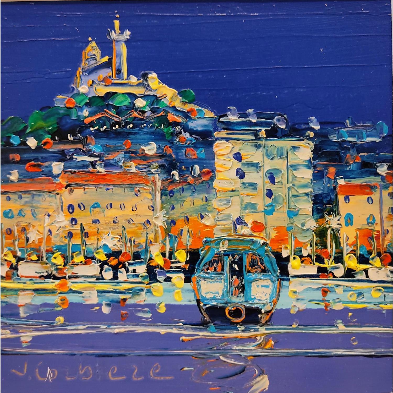 This unique and original contemporary artwork "Le Dernier Ferry Boat" on the subjects of Landscapes, Marine has been created by the contemporary artist Corbière Liisa.