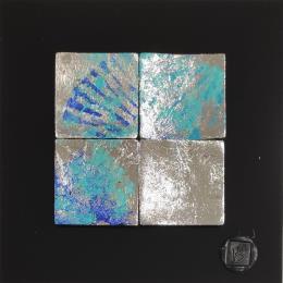 The artist used Acrylic, Wood, Gluing, Resin, Silver leaf media on Dibon to create this Abstract, Small size painting.