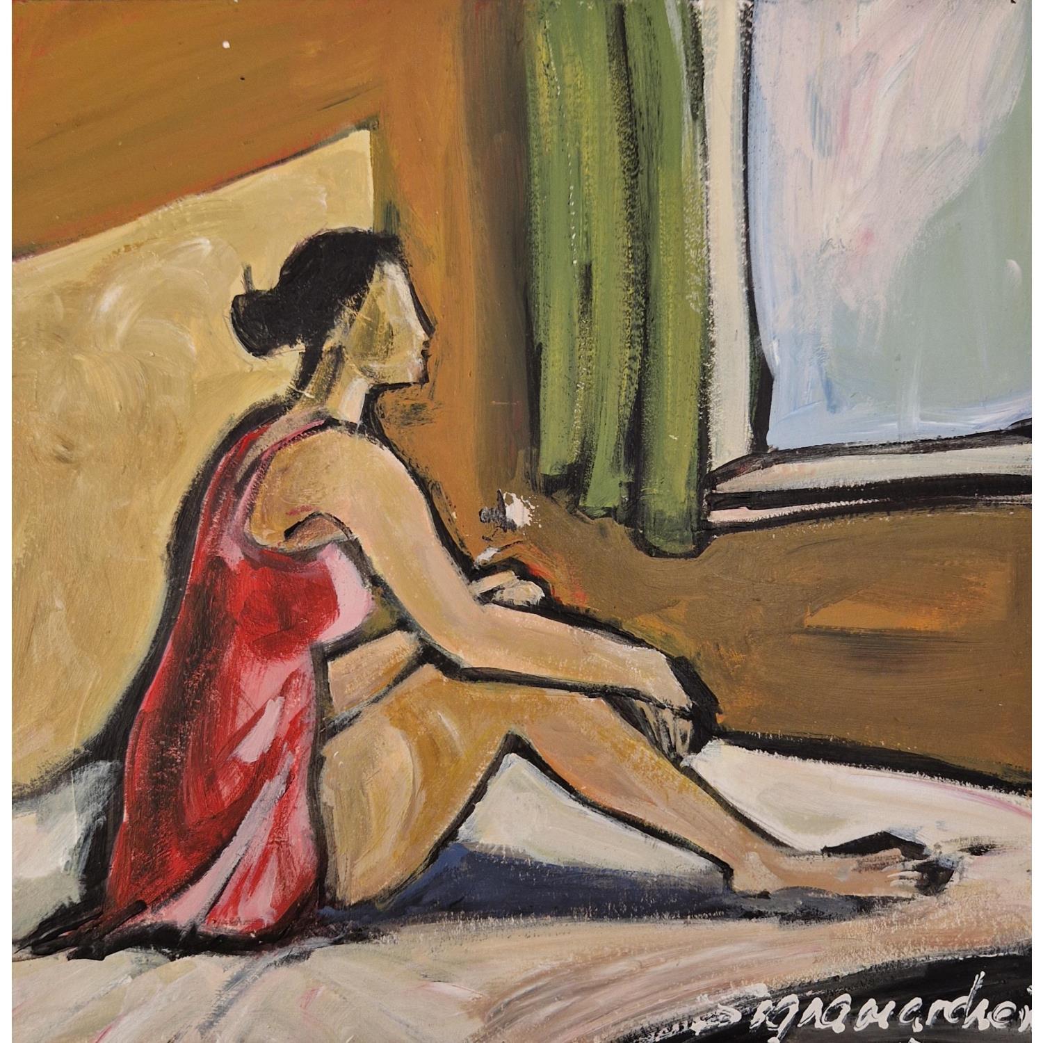 La chambre d'hotelPintura La chambre d'hotel por Signamarcheix Bernard | Pintura Naive art Acrylic Ink Pastel