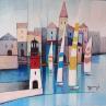 This unique and original contemporary artwork "AQ154 PHARE ET VOILES" on the subjects of Landscapes, Marine, Architecture has been created by the contemporary artist Burgi Roger.