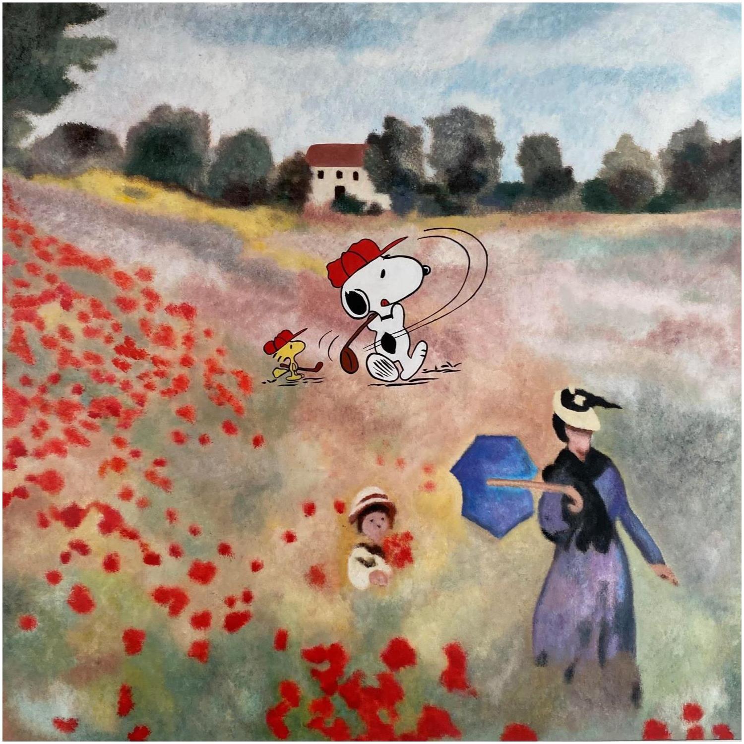 This unique and original contemporary artwork "Golf dans les coquelicots" on the subject of Pop icons has been created by the contemporary artist Marie G. .