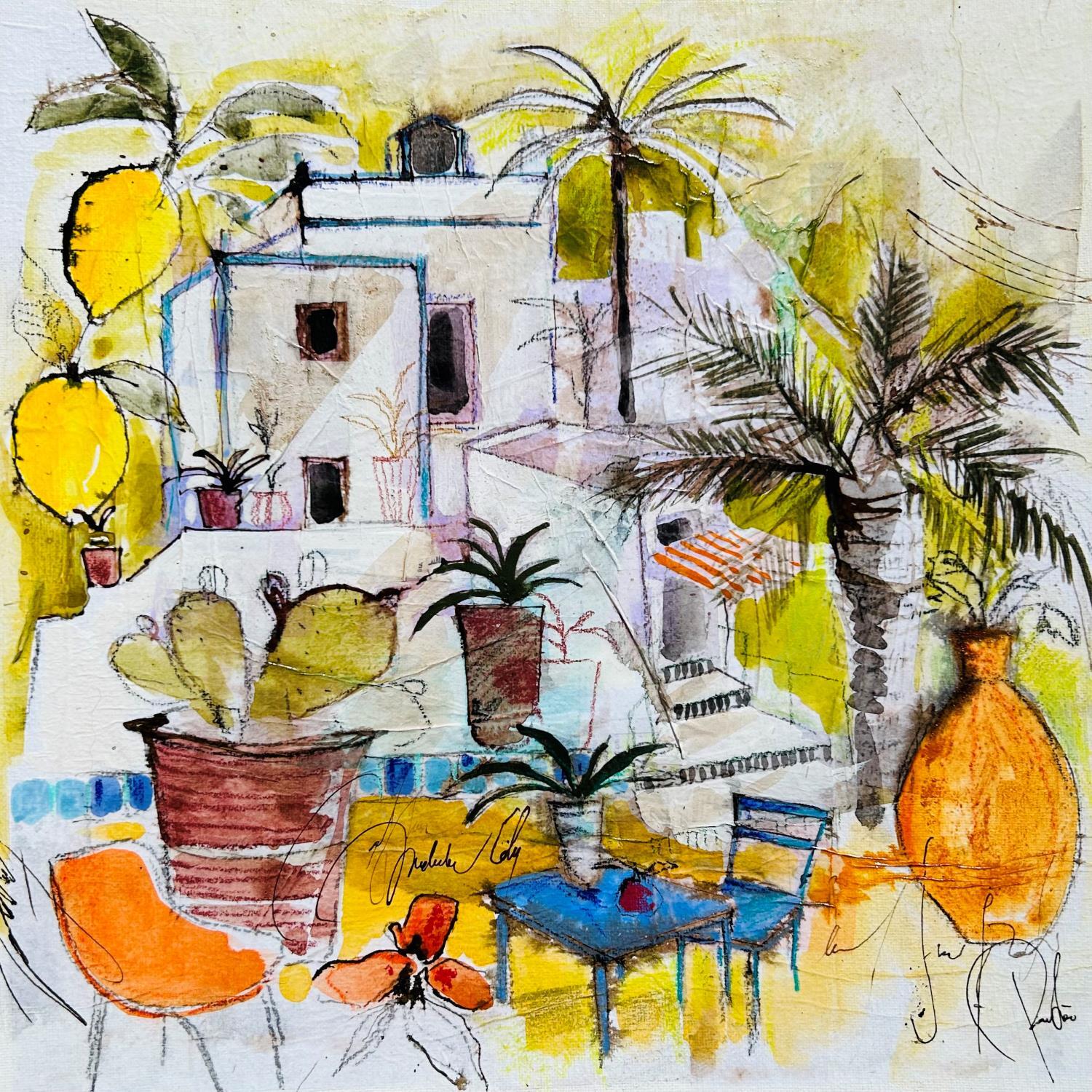 This unique and original contemporary artwork "saveur agrumes" on the subjects of Nature, Landscapes, Life style has been created by the contemporary artist Colombo Cécile.