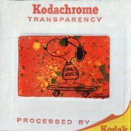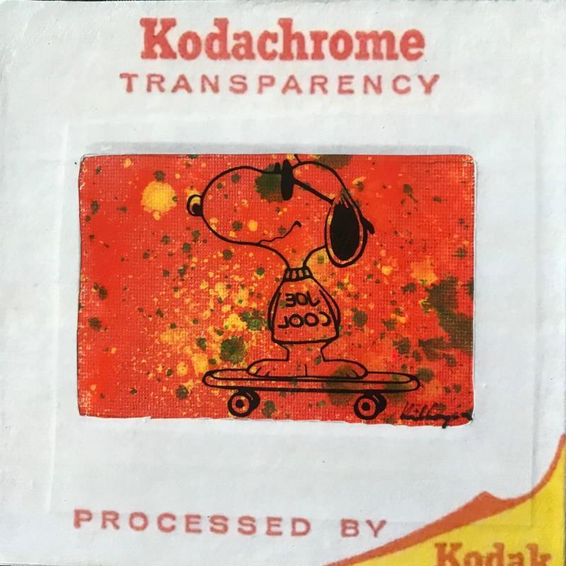 This unique and original contemporary artwork "Snoopy skate diapo" on the subject of Pop icons has been created by the contemporary artist Kikayou.