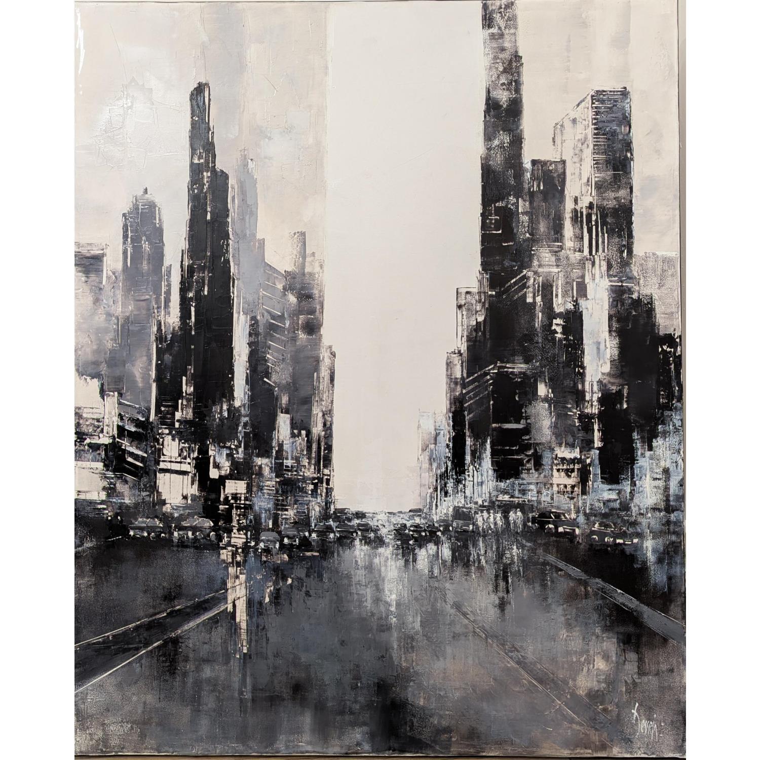 This unique and original contemporary artwork "Black and White" on the subjects of Landscapes, Urban has been created by the contemporary artist Dessein Pierre.