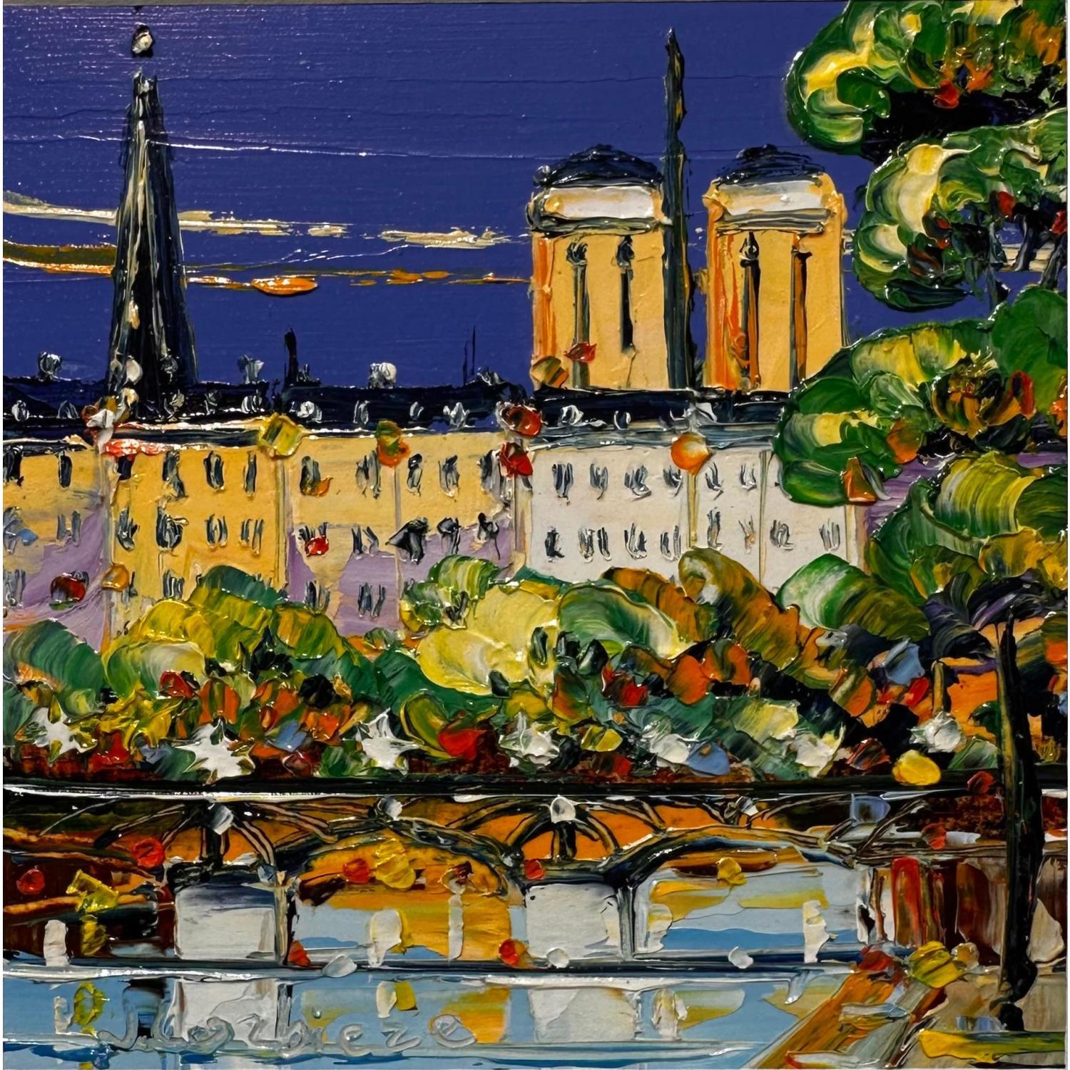 This unique and original contemporary artwork "Un pont sur la Seine, Paris" on the subject of Landscapes has been created by the contemporary artist Corbière Liisa.
