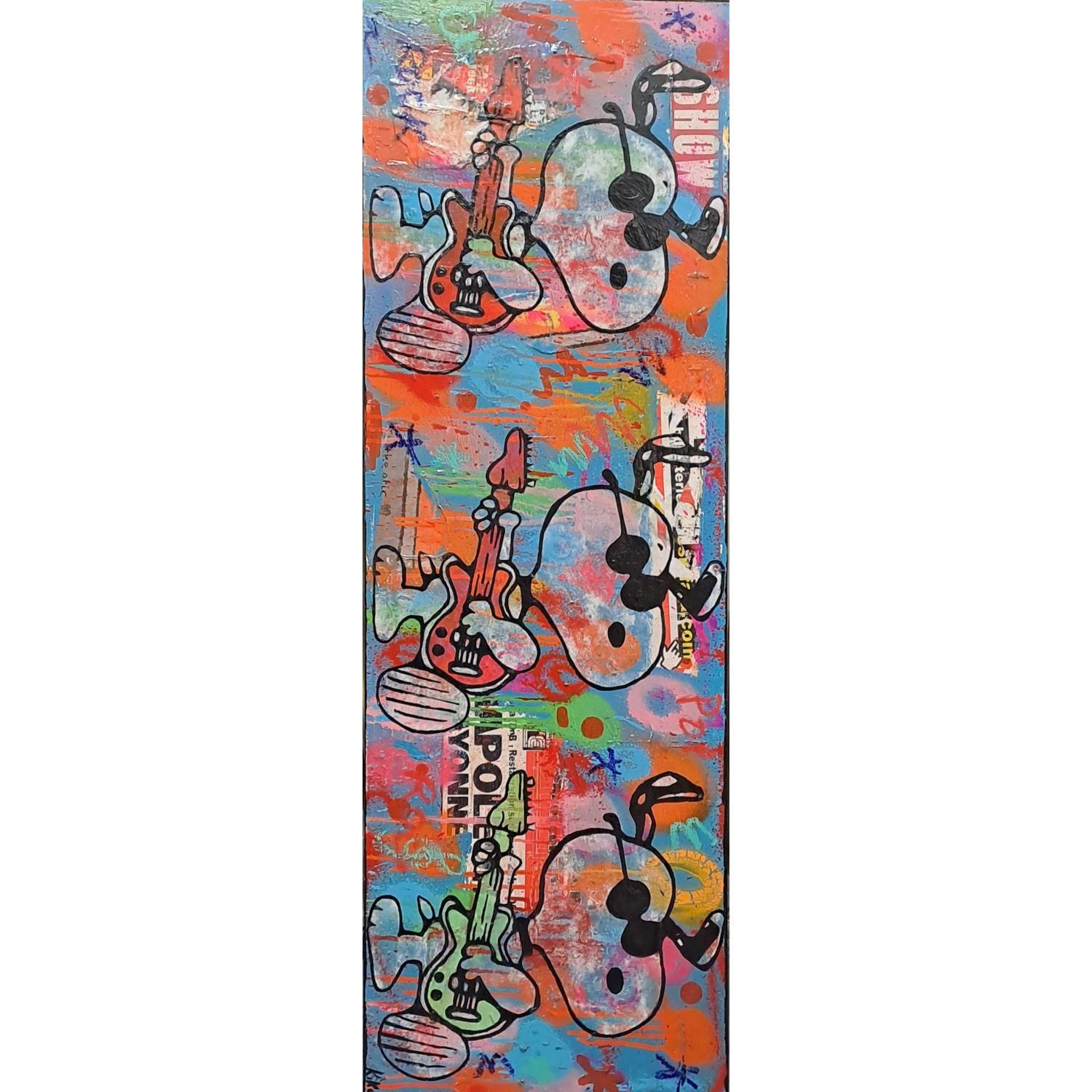 This unique and original contemporary artwork "Snoopy rock by 3" on the subject of Pop icons has been created by the contemporary artist Kikayou.