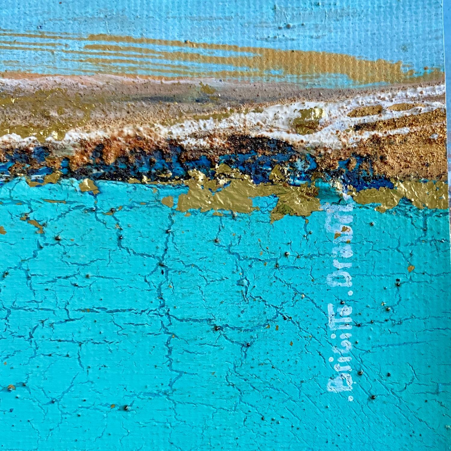 The artist used acrylics and gold leaf to create this small-format painting on canvas in a semi-abstract style.