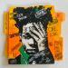 The artist used Posca, Acrylic, Wood media on Wood to create this Pop-art, Small size painting.