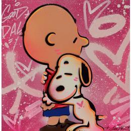 This unique and original contemporary artwork "Snoopy friend" on the subject of Pop icons has been created by the contemporary artist Kedarone.