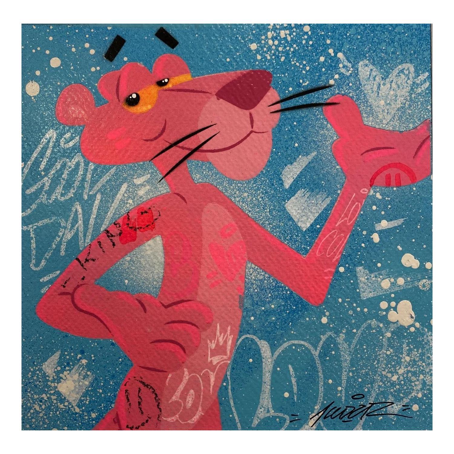 This unique and original contemporary artwork "Pink Panther" on the subject of Pop icons has been created by the contemporary artist Kedarone.