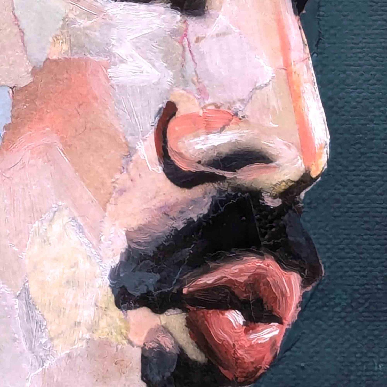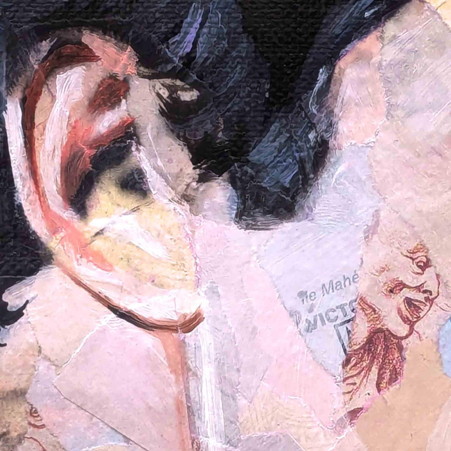 The artist used collage, ink and oil paint on thick paper. The format of this portrait is 13x13cm.