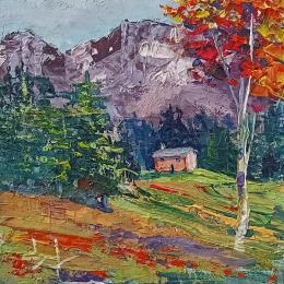 This unique and original contemporary artwork "Autumn colors in the mountains" was created by contemporary artist Degabriel Véronique.