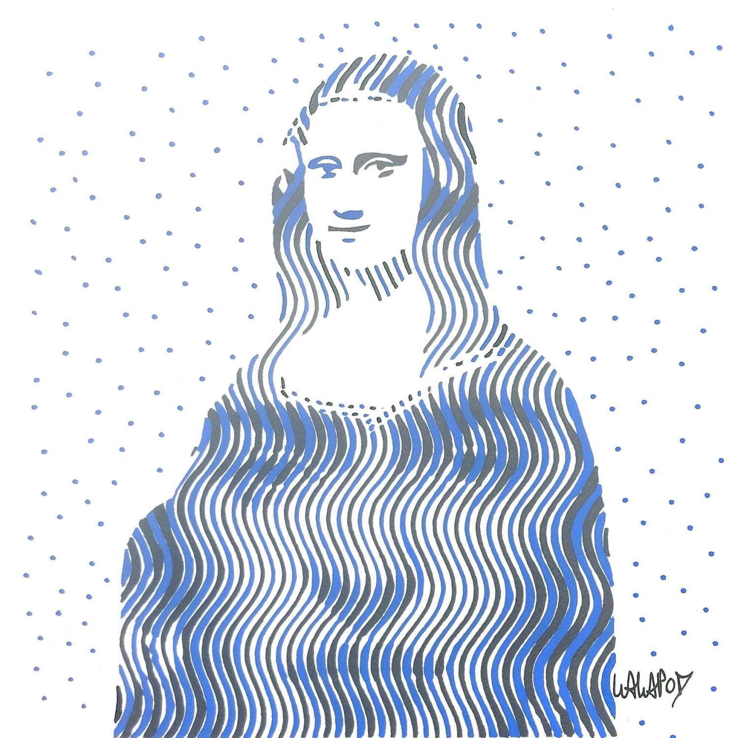 This unique and original contemporary artwork "Mona Frida bleu noir " on the subject of Pop icons has been created by the contemporary artist Wawapod.