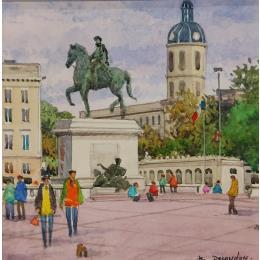 This unique and original contemporary artwork "Lyon place Bellecour" on the subject of Urban has been created by the contemporary artist Decoudun Jean charles.